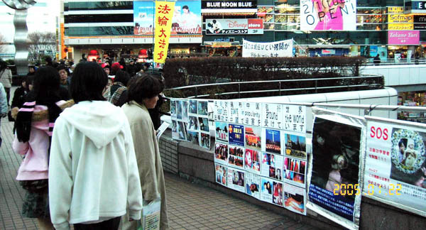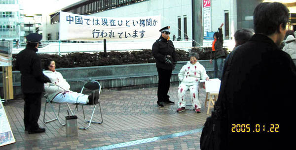 一位日本县长知事的秘书,路过此地时,被许多酷刑照片所震惊。他听了法轮功学员讲解的在中国正在发生的对法轮功学员残酷迫害的真象,并在反酷刑展前停留了半小时之久。