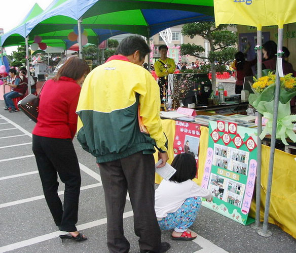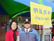 活动期间,法轮功学员主动向与会的花莲县县长谢深山介绍法轮大法及明慧学校,谢县长很高兴的收下大法资料,并说:“法轮功好”。花莲县教育局长张志明、副局长邓明星及许多教育界人士等,纷纷签名肯定明慧学校的教学理念。四维高中校长黄英吉主动与学员合影留念。博览会活动组瑞北国小校长李国清于活动结束后,特别感谢明慧学校的参与展出。