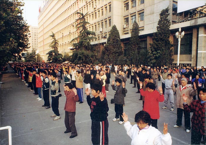 历史图片:1999年7.20前长春法轮功学员炼功学法场面