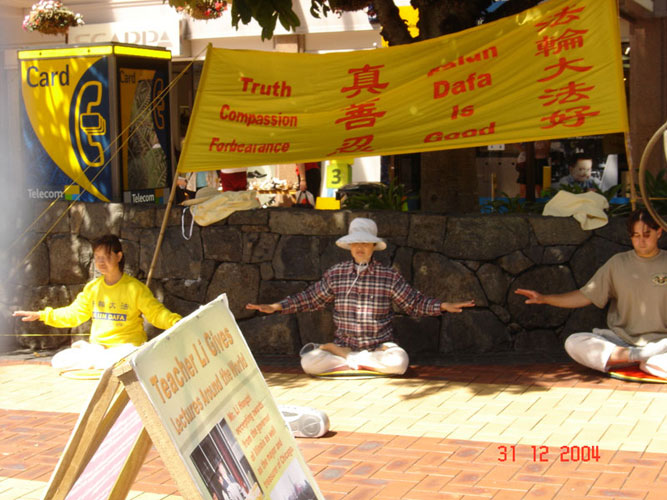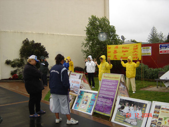 一名路人看到法轮功学员炼功的场面便停了下来,当他读到报纸上的“真善忍”三个字,便非常有兴趣的和法轮功学员长谈起来,当他听说法轮功学员正在准备联系当地媒体的时候,便主动的表示,他可以帮助联系,原来他是当地的毛利议会的领袖。他随后立即打电话帮助法轮功学员联系了一家毛利广播电台当天做现场采访直播。