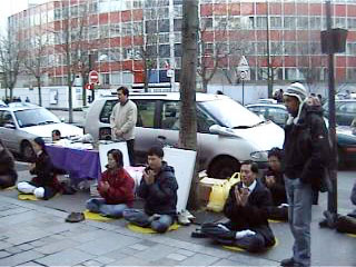 巴黎的法轮功学员们通过向人们展示法轮功五套功法和发放有关法轮功真象的小册子,希望能够让人们从正面了解法轮功,并向善良的人们征集“呼吁在中国立即停止对法轮功的迫害”的签名。