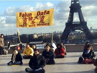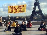 人们来了解真象 |  在埃菲尔铁塔下展示功法 |  签名呼吁停止对法轮功的 |