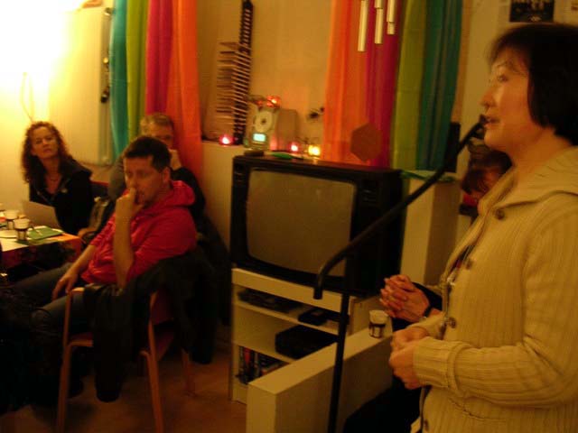 学员们答应再次回到艾斯诺夫举办免费的学法班,播放李洪志大师的九讲录像。当天最后是以分送材料给学会成员作结束,包括有关法轮功及这场迫害真象的简介以及报纸,另外也分送人们学员自己制作的小纸莲花。该学会图书馆现在已陈列法轮功书籍。