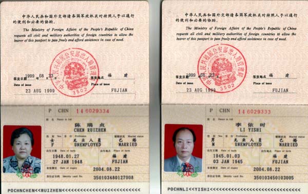 被中领馆无理拒延的李依时夫妇的护照