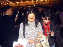 ![]() 满是人群的展示厅 | ![]() 认真读大法真象资料的人们 |