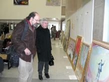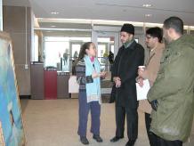 纯朴的学生们被这样残酷的迫害所震撼,更为画中表现的学员在残酷暴力下体现出的坚忍不屈的精神所感动,很多人仔细观看着,有些人流连忘返。很多观众纷纷用相机把画面认真拍照下来,他们表示这些艺术作品中无论从色彩和技巧上都很精湛,也有不少观众表示很欣赏这些作品,询问是什么艺术家创作的,并希望能够购买。这些画展作品的艺术家之一陈肖平女士,也亲自到场,现场为观众介绍她的作品。