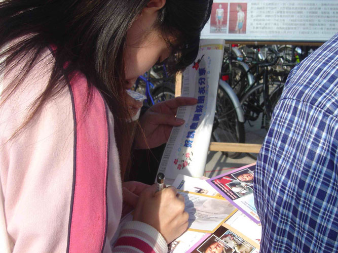 法轮功学员们在火车站前广场展示了优美的五套功法,其他学员则在酷刑展旁发真象资料并向观看民众解说。很多学生看到酷刑展时都觉得非常的残酷,不敢相信在21世纪,中国大陆还发生这样的迫害的事件,并主动在明信片上签名支持要求停止迫害法轮功。