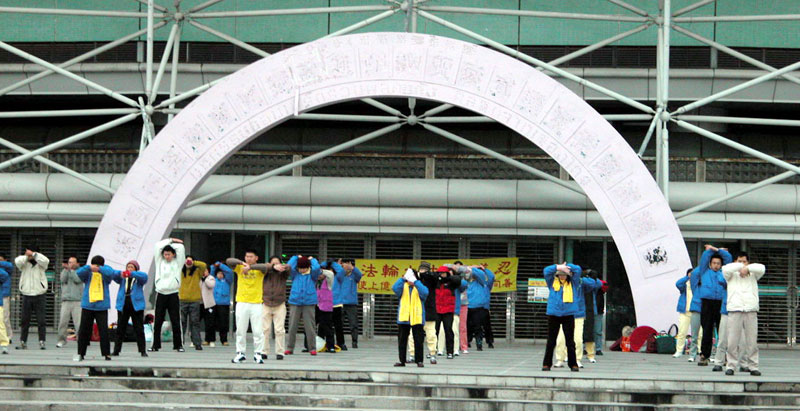 当日清晨的气温约摄氏7-8度,是台湾入冬以来最冷冽的一天。然而在法轮功学员们专注的神情里丝毫找不到寒冷的踪影。清晨七时许,人们从四面八方陆续进入体育场,法轮功学员在一边的集体炼功,引来了许多民众的驻足观赏。随着法轮功为更多的人认识,桃园学员的人数也逐年增加。