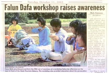 密西西比镜报(Reflector)10月11日报导,星期六(10月8日),本地的一种打坐功法的炼功者们举办了一个学习班,教那些有兴趣的人学习这种简单的功法。在中国,这种功法的炼功者们受到了迫害