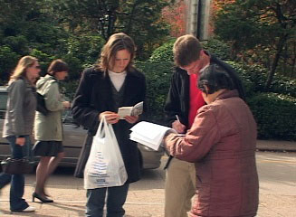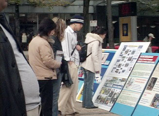 ![]() 人们观看法轮功真象展板 | ![]() 人们观看法轮功真象展板 |