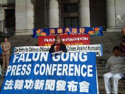 卡尔加利法轮功学员、来自广州的段凯文为新闻发布会作了书面发言。