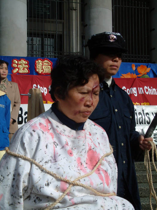 凯文在发言中说,“我仅仅因为信仰法轮功,一个教人向善做好人、并获得健康身体的气功锻炼,并向大陆民众讲述和制作真象资料,2000年12月13日晚上10点半,被广州市610和天河区610非法抓捕,他们没有任何理由,也没有出示拘捕证,就把我与其他三位学员秘密抓捕,并随后进行了长达7个小时的毒打,致使我全身青紫,昏迷了过去。
