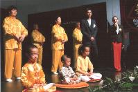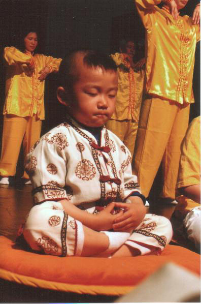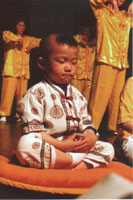 ![]() 在健康博览会向人们介绍法轮功 | ![]() 3岁小弟子念念在打坐中 |