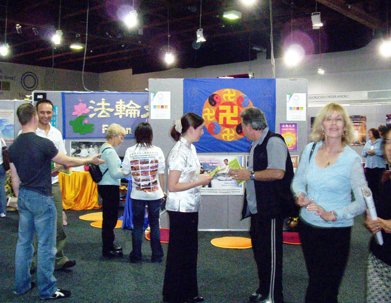 展览会共3天时间。每天法轮功都有30分钟的功法展示。学员展示的舒展的动功,优美的炼功音乐和祥和的气氛吸引了许多观众。特别引人注目的是4位小弟子,他们在30分钟的功法展示中一直展示静功。他们各个神情专注,表情庄严。最小的弟子年仅3岁。观看功法展示的一位从事心理研究的医生对一位学员说:“这太不可思议了,你们是怎样使一个3岁的孩子能在那里静静的坐半个小时?这期间我只看见他挠了两下脚心,再就没动过。这对任何一个同龄的Kiwi(新西兰人把自己称Kiwi)孩子是根本做不到的”。