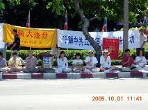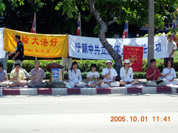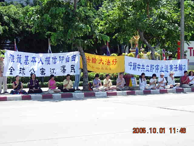 【明慧网2005年10月2日】2005年10月1日上午,部份泰国法轮功学员聚集中使馆前,呼吁立即制止中共对法轮功的。