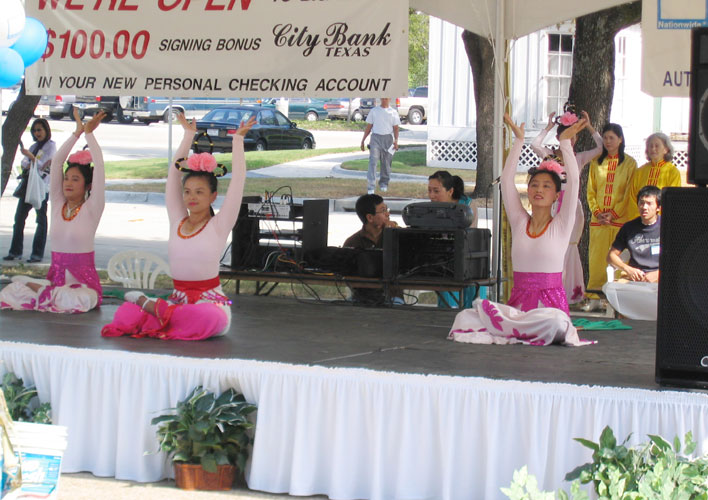 法轮功学员表演了三人舞“花仙”。与之前节目的表演风格完全不同,观众们完全沉浸在音乐伴随着的舞蹈的祥和和安宁之中,远处的观众也慢慢向前靠拢。