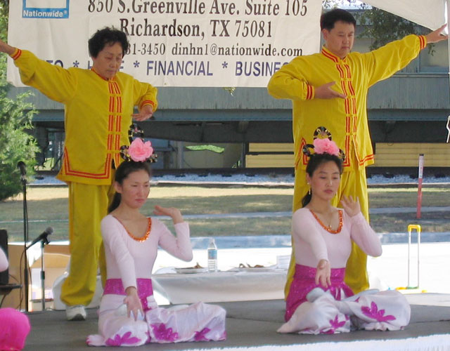 ![]() 法轮功学员表演舞蹈“花仙” | ![]() 法轮功学员演示五套功法 |