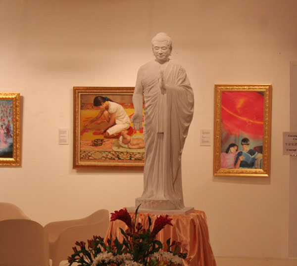 ![]() 雕塑《佛像》 | ![]() 来宾在欣赏《摆位图》 |