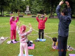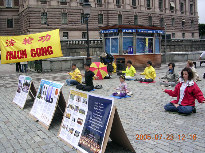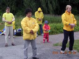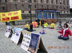 各国法轮功学员中使馆前宣读《法轮大法学会公告》