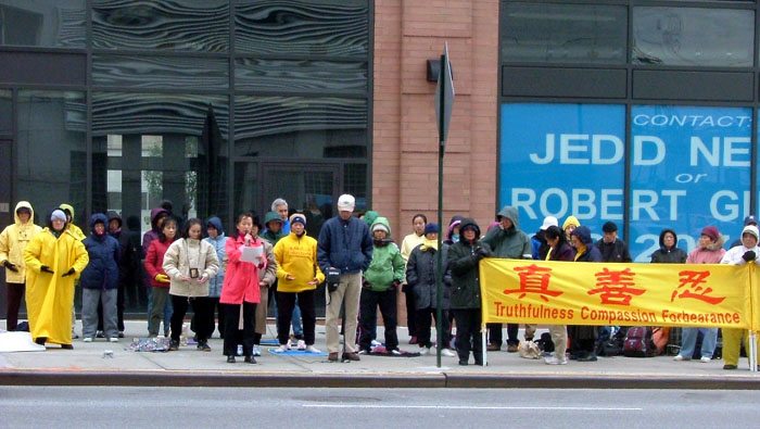 从大陆逃脱后在美国政府和国际难民机构的协助下,刚刚来到美国的法轮功学员李伟勋在中领馆前讲述了因为修炼“真善忍”,她及家人被中共残酷迫害的事实。在看守所她遭到长期的酷刑折磨和精神迫害,她的上下肢不能动,浑身还长满不知名的疙瘩,刺痒钻心。后来由于无法進食,人陷于昏迷状态,医院下了病危通知。为推脱责任,这时沈阳市610才批准保外就医。伟勋最后说:“虽然我今天获得了自由,可是我的哥哥,一个没有修炼法轮功的人,因为营救了我和其他的法轮功学员而被判处了8年徒刑,至今还在大北监狱受折磨。我们要为营救他们大声疾呼。”