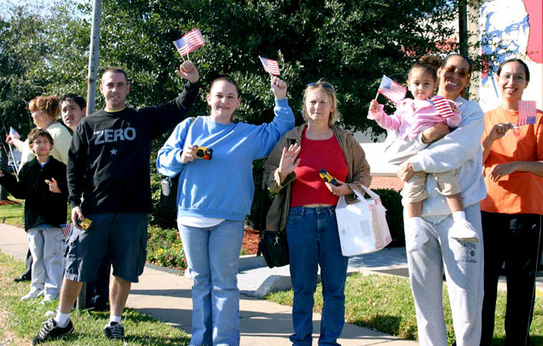 ![]() 观众向游行队伍致意 |