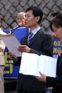 ![]() 日本学员中使馆前宣读法轮大法学会公告 |