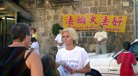 几天后我们从阿卡阔出发来到了海发城(Haifa)。在当地举行电影节的公园里组办者给我们提供了位置和桌子。我们摆放了传单和纸叠莲花,旁边放了我们的真象展板。一边是我们炼功,另一边有大法弟子教孩子们学叠纸莲花。在活动期间有两个年轻人经过,我们给他们发了传单,开始时他们不是很情愿的接了,当我告诉他们这个事情很重要,法轮大法的原则,并且全世界都需要“真、善、忍”。那个年轻人说:“是啊,世界需要真善忍是很重要的!”学员告诉了他们在中国发生着对大法弟子的迫害,他们都非常惊讶。一个年轻人过了一会特意回来问我哪里能学到功法,而后问到“第一次初学不要钱吧?”当我告诉他教功都是免费的,他特别惊奇,眼中流露出感激的眼神。