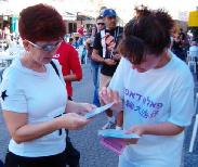在一家饭店旁我们开始了我们的活动,有的大法弟子炼功,有的发传单,有的介绍展板,我们的出现吸引了众多的民众,很多路人停下脚步并跟着大法弟子的动作比划着炼功。很多人都认真听我们讲大法真象和在中国遭受迫害的事实。不少人在征签表上签下了自己的名字来谴责中共对法轮功学员的迫害。