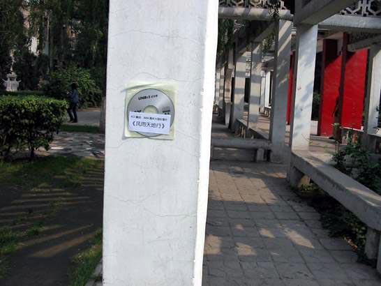 真象和大法洪传全球的情况,大法弟子“十一”到山西大学教学楼、办公楼、花园等处放光盘、小册子、卡片、传单等真象资料,供师生们拿取、观看、阅读。