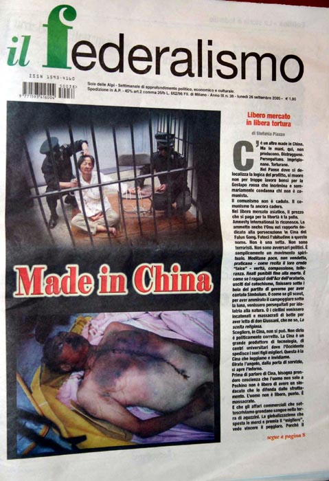 文章配有从法轮大法欧洲圆明网意大利文网页上下载的大量酷刑图片和大.纪.元;·九·评*特刊意大利文报纸的照片。文章中引用大量的《·九·评*共产党》中的第五评《评江泽民和中共互相利用迫害法轮功》的描述,叙述了中共对这个修炼真善忍的团体的迫害。在谈到江氏集团和中共为迫害法轮功而制造的所谓的天安门自焚时,斯特法妮写道:“我几乎找不到语言来形容江氏集团制造的自焚惨案,它的目地是企图让人们相信这个精神信仰团体是恐怖分子。”