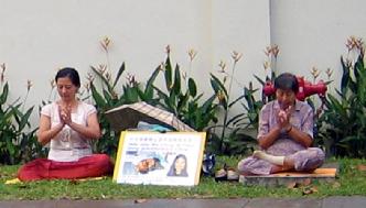今年6月高蓉蓉在沈阳被中共虐杀后,新加坡法轮功学员开始每天风雨无阻的到中使馆前炼功发正念,呼吁制止中共对法轮功学员的残酷迫害。