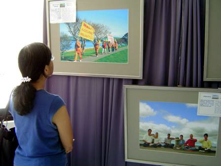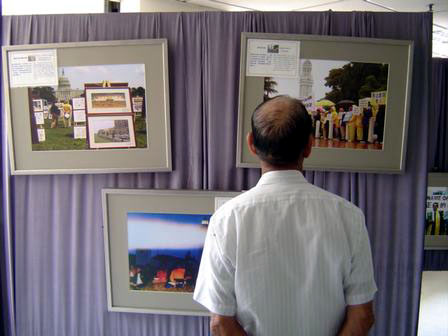 ![]() 真象图片带给一室祥和 | ![]() 老伯伯仔细观看摄影作品 | ![]() 共同关切迫害真象 |