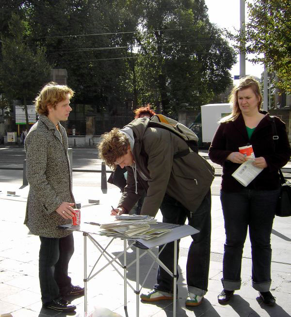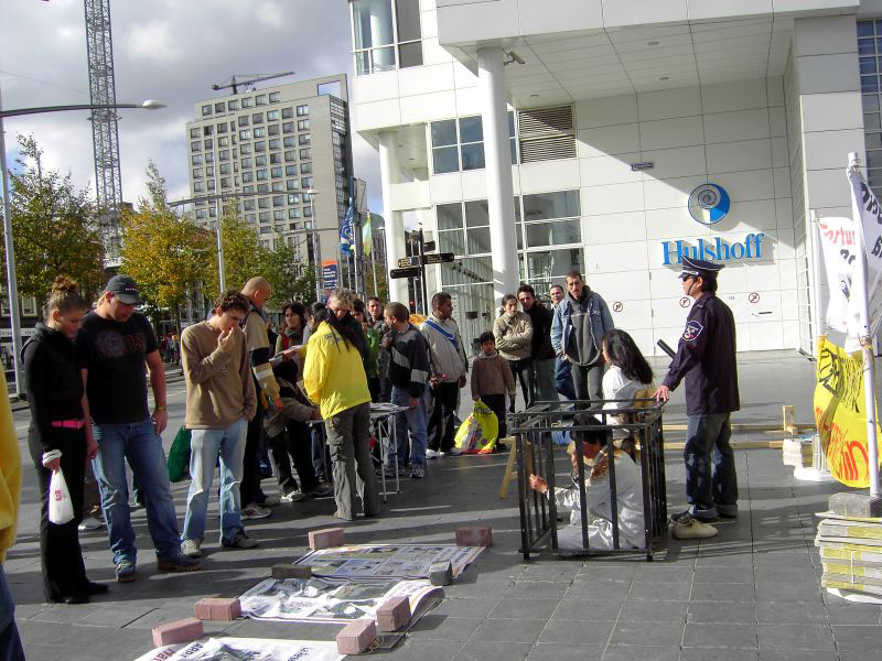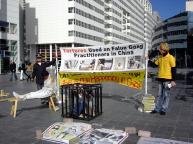 人们路过广场时,都忍不住留步观看。简洁明了的横幅和逼真的酷刑演示使人们立刻了解了在中国所发生的迫害。人们马上问,“为什么?”学员解释说,迫害之所以发生,是因为江××个人对法轮功的妒忌和中共的邪恶本质无法容忍法轮功倡导的“真善忍”。人们感到震惊和不可思议。