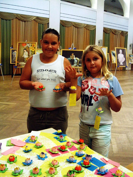 有趣的是,天真的孩子们告诉导览,他们看到画里的人在动,他们是活的。看过画作后,孩子们学法轮功时,感受到小腹部法轮旋转时强大而非常舒服的能量。