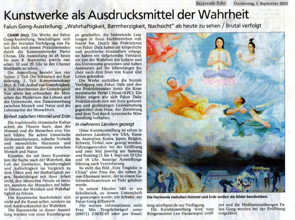 ![]() 《拜恩回响报》等多家报社为画展作预告 | ![]() 卡姆市当地两家报社报导真善忍画展 |