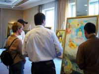 九月底的周末,真善忍国际美展在帕绍市的假日酒店 ( Holiday Inn)举办。美展给来宾留下了深刻的印象。一位艺术家接到画展介绍资料后,立即赶来参观,他说,他非常欣赏画作“天人合一”。作为艺术家,就应该表现正的,这是他努力的方向。他认为,画作“天人合一”就是一幅将艺术导向正路的佳作。