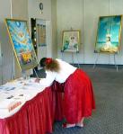 其中不少人看了画展后,对法轮功颇感兴趣,表示要阅读法轮功的书籍。有些人告诉导览,他们能感受到这个画展散发着很强的能量。