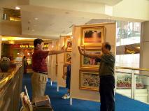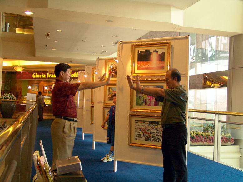 ![]() 现场教功 | ![]() 人们认真观看画展 |