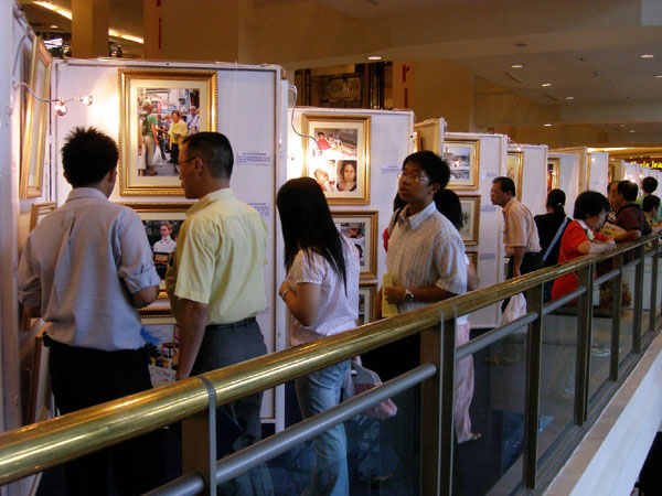 一位男士看了图片后,听到工作人员讲解说,全世界都有征签活动以制止中共迫害法轮功,他急忙诚恳的问:“这里没有类似的活动吗?”二话不说连忙在征签纸上增添一名。