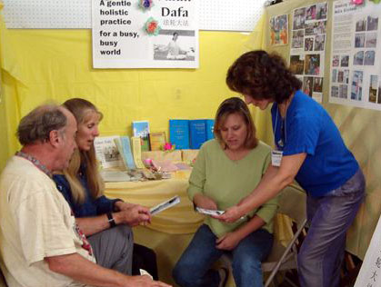来的人对大法介绍非常感兴趣而且真心的想学功。他们中的一些人星期五已经来过摊位,现在又回来学,其他人也从材料上了解了法轮功介绍班。我们相信今年比往年威力更大。