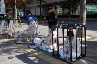 学员们在场外向参加研讨会的人权律师和市民们呼吁关注在中国发生的对法轮功的迫害,及目前正在日本进行的对中国大使馆以及江泽民等迫害元凶的诉讼。