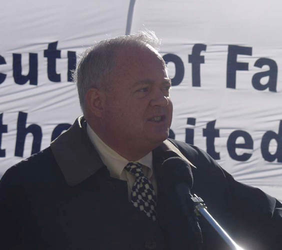 法轮功学员起诉中共将迫害输出海外的RICO一案的辩护律师马丁•麦克曼(Martin McMahon)和他的几位同事也来到集会现场并发言声援他的中国律师同行高智晟。麦克曼律师说:“就象当年里根总统告诉戈尔巴乔夫拆掉柏林墙一样,希望布什总统能告诉胡锦涛拆掉网络封锁,给中国人民自由,把中国的宪法还给中国人民。”