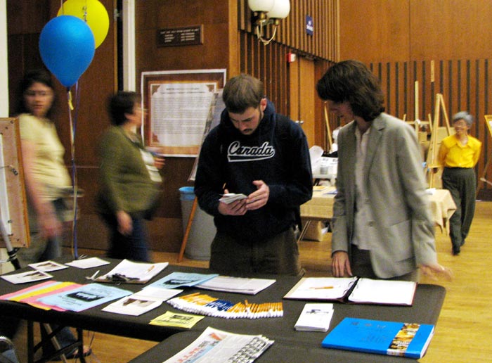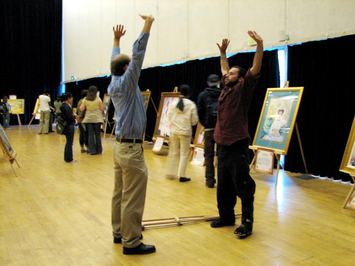 伯克利法轮功俱乐部成员Ben Benbit 表示,他是伯克利的学生,也是一名法轮功学员;该俱乐部是他与其他几位在此读书的法轮功学员一起办的,在学校有注册登记。他表示,当天的画展,很多学生观画后表示想学功。