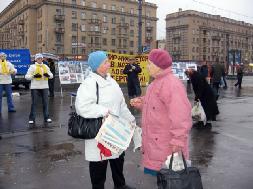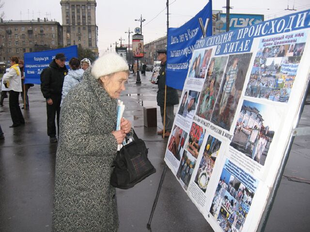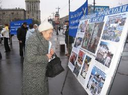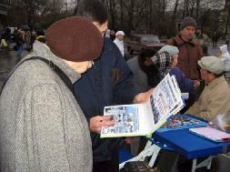 揭露中共迫害法轮功学员的酷刑的真象展板上,一幅幅被残酷迫害者的照片,一个个为坚持信仰坚贞不屈的故事,震撼了人们的心灵,唤醒了人们的良知,一些人流下了眼泪。人们不停的提出各种问题,怎么能迫害这样一群好人?学员耐心的告诉人们:“中共邪*党-的本质是假、恶、斗,它容不得信仰真、善、忍的好人”。人们一下子明白了。有些人还回忆起原苏联在共产邪*党-统治下发生的那些残酷迫害。明白真象后的人们纷纷签名支持反迫害。附近一个大学城的很多学生包括中国留学生也都接收了真象资料。