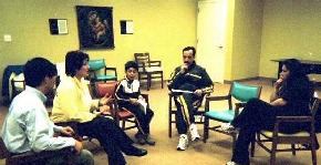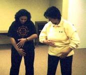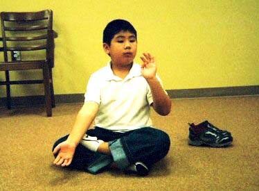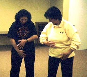 学员们首先放映了介绍法轮功的短片,然后就开始教功。教功时先放李老师的示范录像,然后再由学员教功做示范,并纠正动作。来学习的人,不管是大人,还是小朋友,都学的很认真。