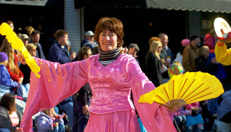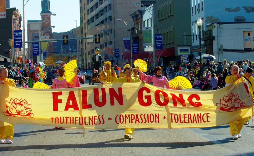 法轮功学员在过去五年里已参加过三次海里斯堡游行。今年游行的主题是“节日里最美好的记忆”,法轮功学员以巨大的“FALUN GONG”横幅开道,再一次将“真善忍”带给了海里斯堡市民。学员还表演了腰鼓和扇子舞,沿途受到鼓掌喝彩,让美国人在节日期间欣赏了中国传统文化给人们带来的美好、祥和和喜庆。一对老年华人看到法轮功学员高兴的说,还记得两年前你们表演腰鼓的威武雄姿。一个美国人说:我的两个孩子最喜欢你们的表演了!
