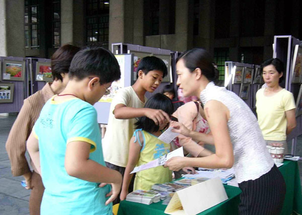 ![]() 人们纷纷索取真象资料 | ![]() 学员为观众导览 |