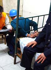 此种酷刑是锦州教养院新收大队的恶警对新抓进来的法轮功学员通常采用的酷刑之一。以下是恶警指使四防员连续打昏、重伤三名大法学员的经过,分三个步骤描述。