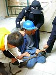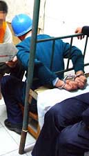 几年来锦州教养院的恶警们疯狂迫害大法弟子,手段之残忍,行径之卑鄙,令人发指。他们不但施用以往折磨普通犯人的经验,还发明设计新的毒计,兽性大发,人性全无。下面展示的是大法弟子在这里曾经遭受过的部份酷刑。(由真人模拟)
