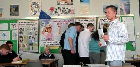 全班诚挚的感谢法轮功学员们,老师也热情的感谢他们,说这场介绍真是好极了。这位老师还建议学员们拜访苏格兰的其它学校,她表示这场迫害使她震惊,她很高兴介绍会使学生们了解了这场迫害。